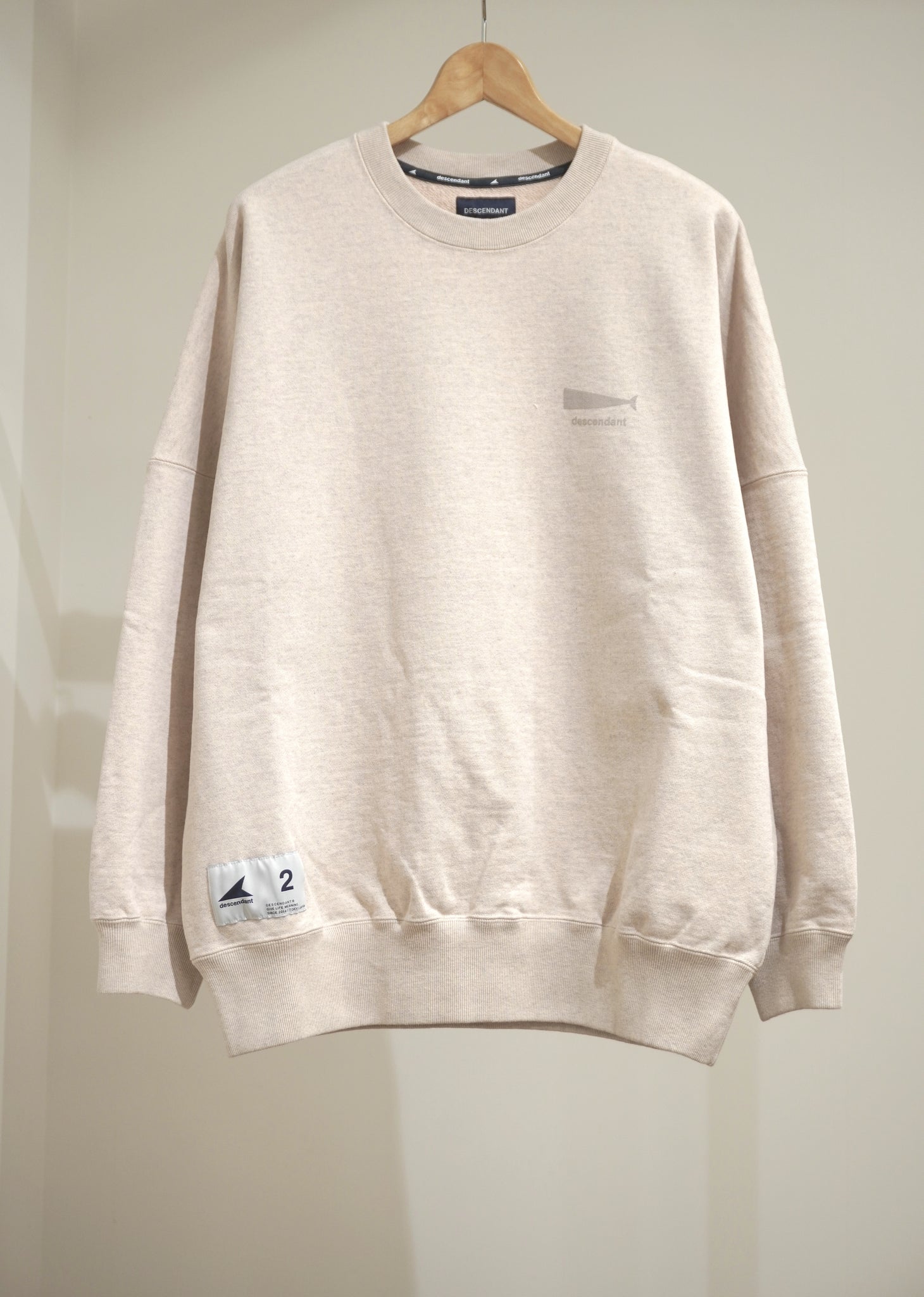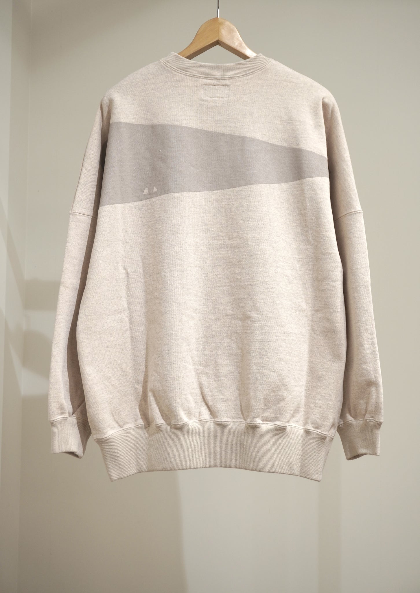 中厚地のコットン裏毛を使用したゆったりした身幅のクルーネックスウェットシヤツです。