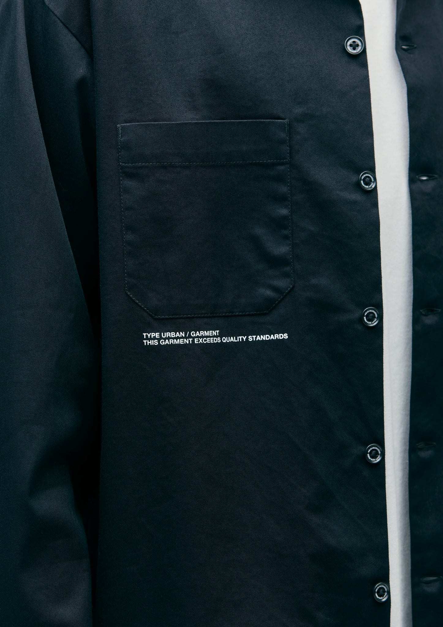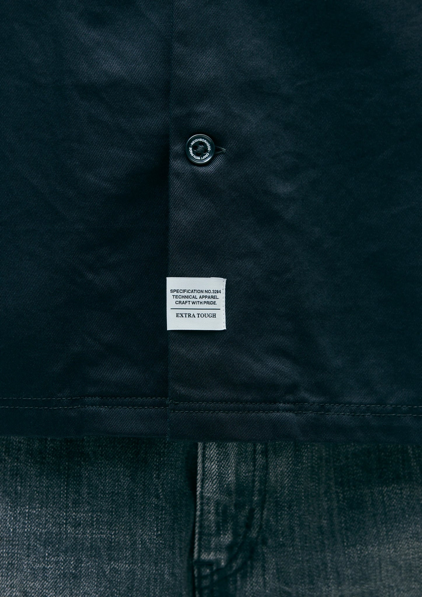 オリジナルの四つ穴ボタンを採用し、前立てにネームタグ、