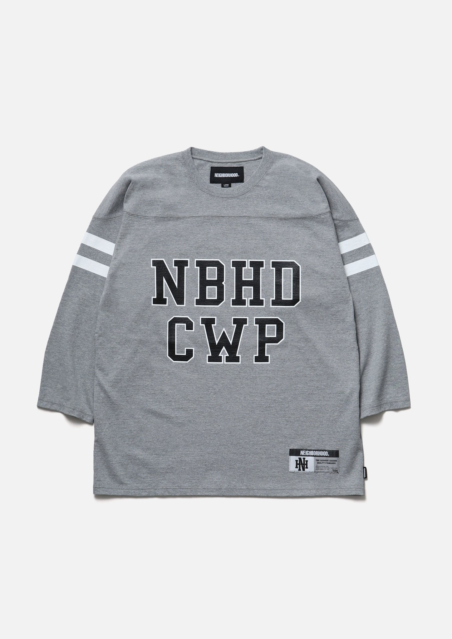 天竺素材を使用したフットボールシャツ。身頃中央にロゴとスローガン、