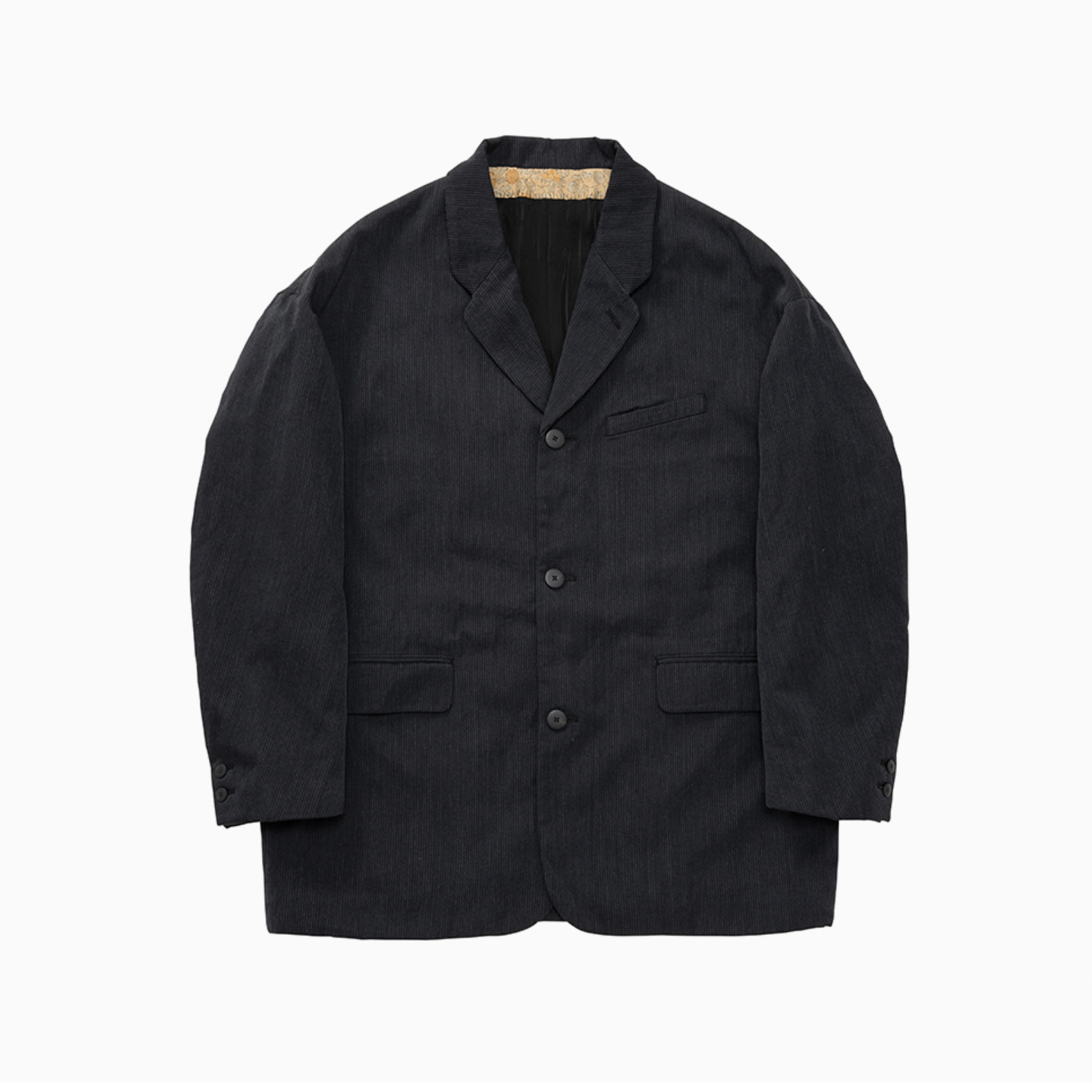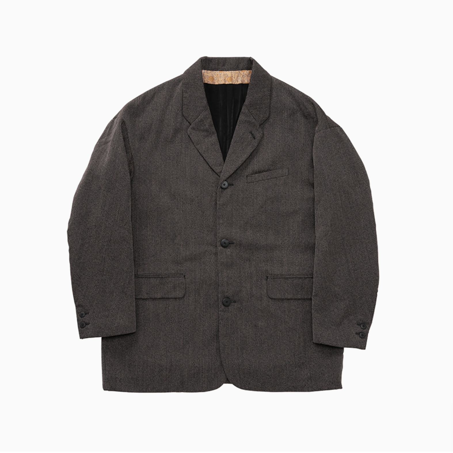 毛と麻をストライプに織り上げた生地を使用したジャケット