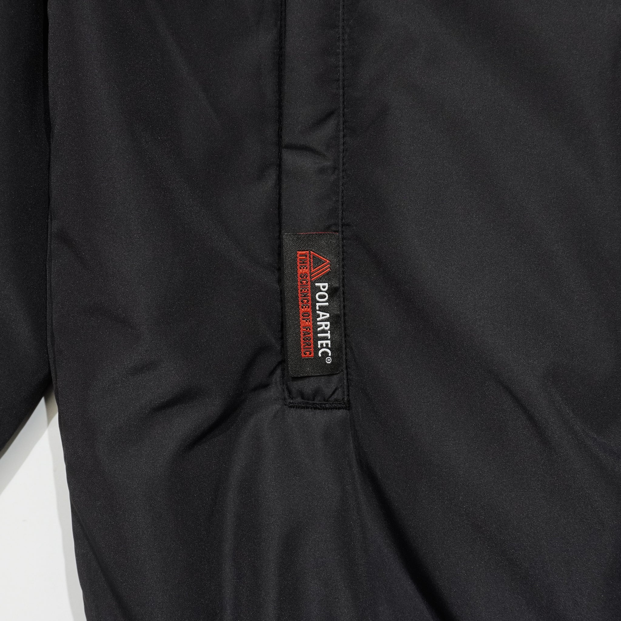 サイドのジップポケットには保温性に優れた機能素材POLARTECRのネーム