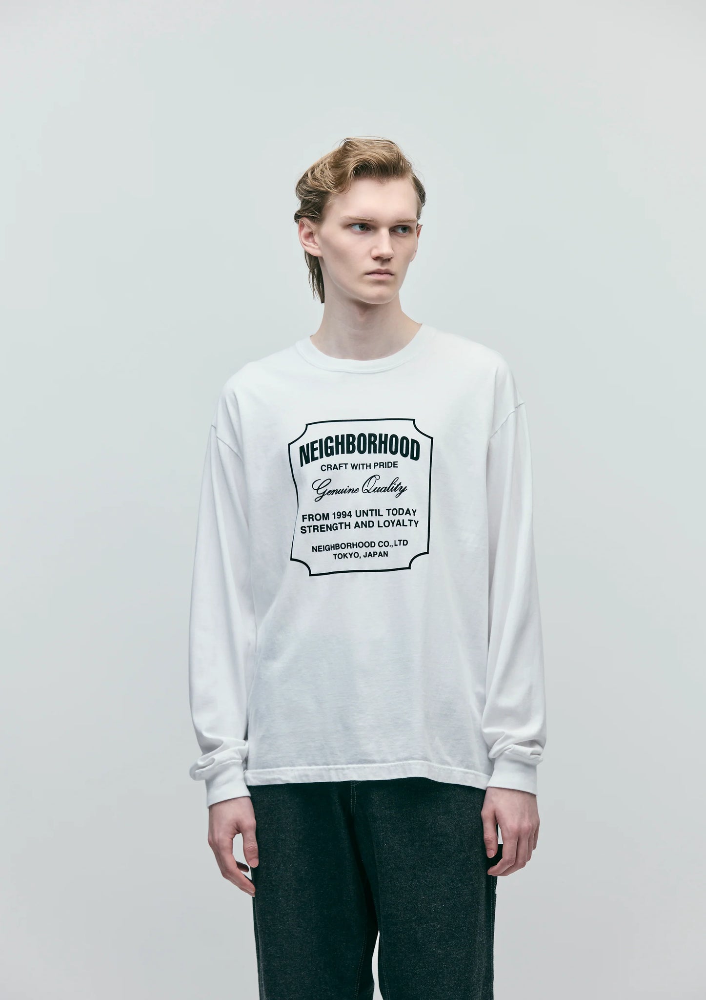 コットン天竺のオリジナルボディーを使用したロングスリーブTシャツ。