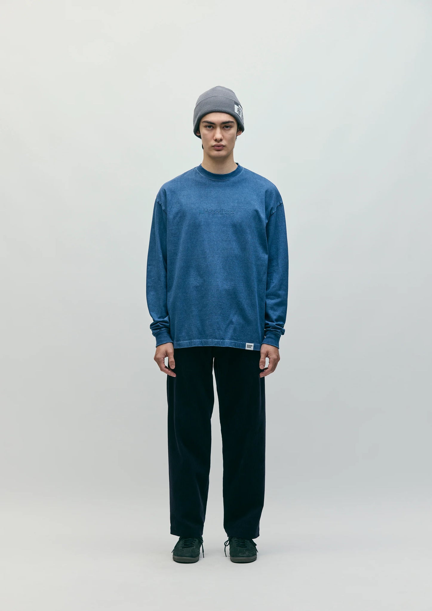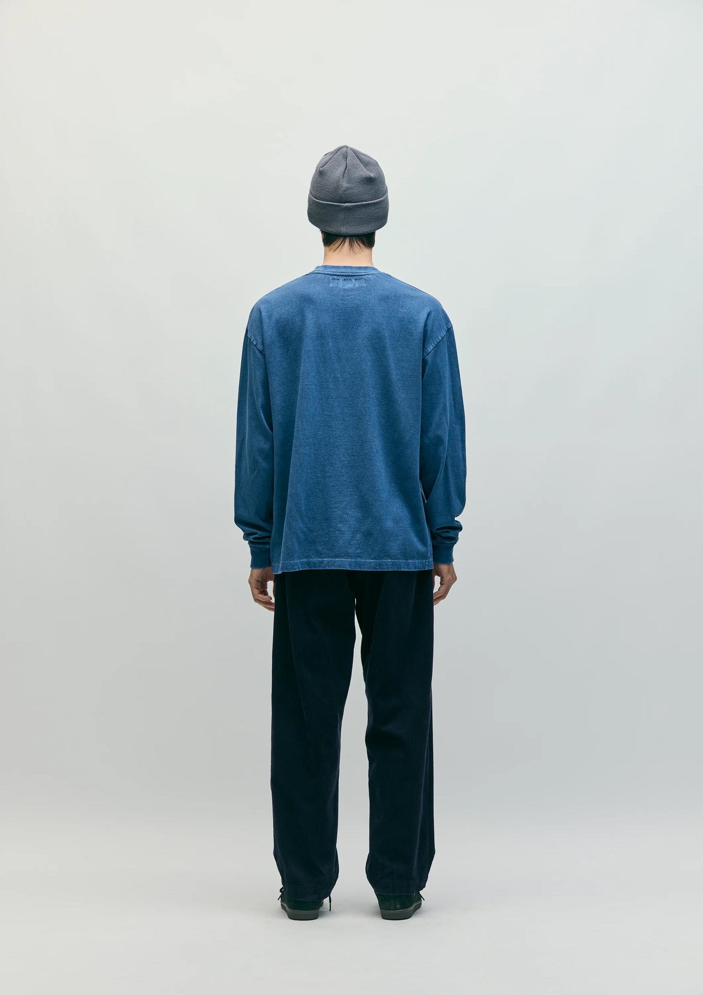 製品の状態でピグメントダイ加工を施した、コットン天竺素材のクルーネックカットソー。