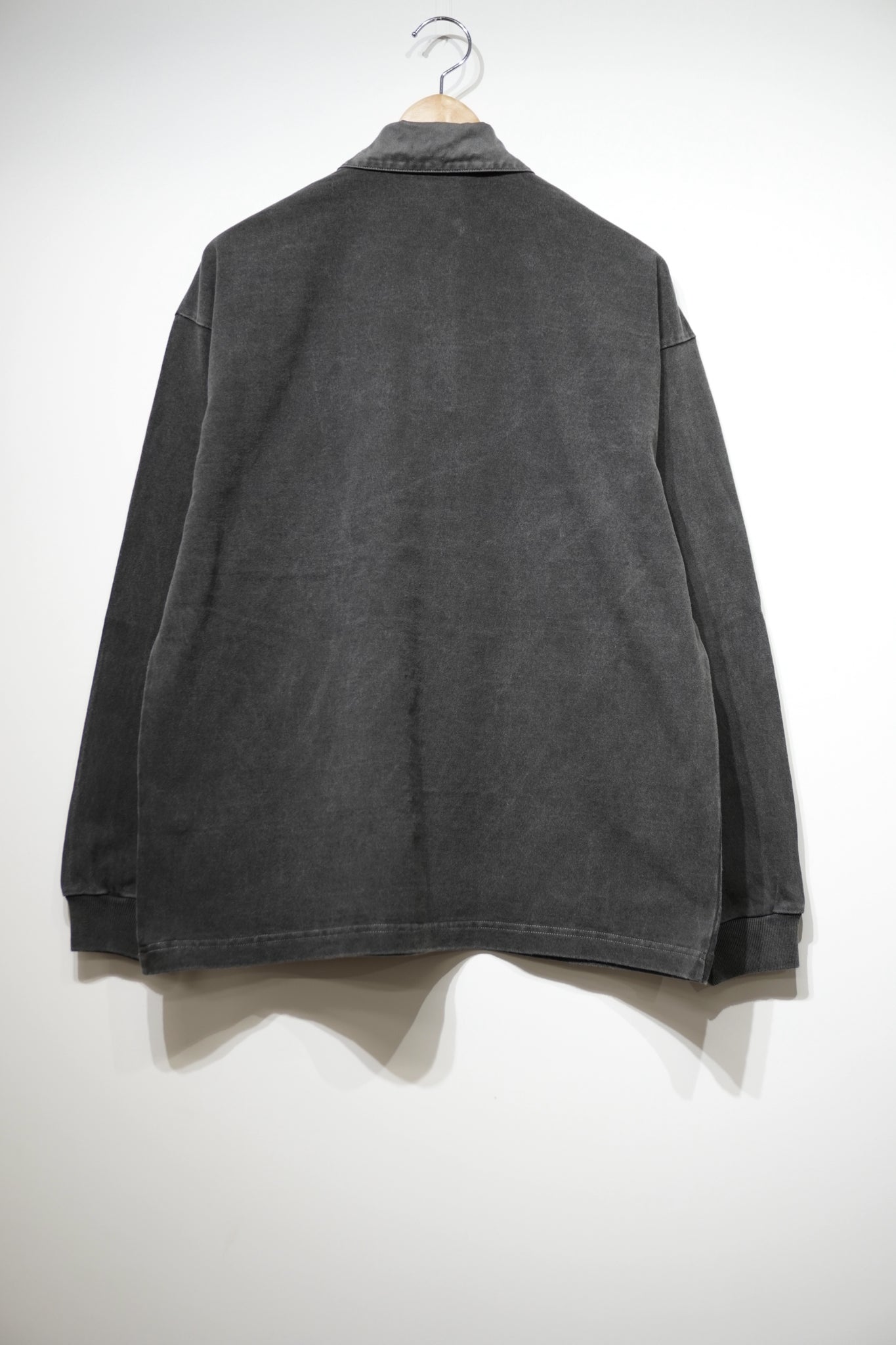 ラグビーシャツベースにアレンジしたピグメントダイ加工のロングスリーブポロシャツです。