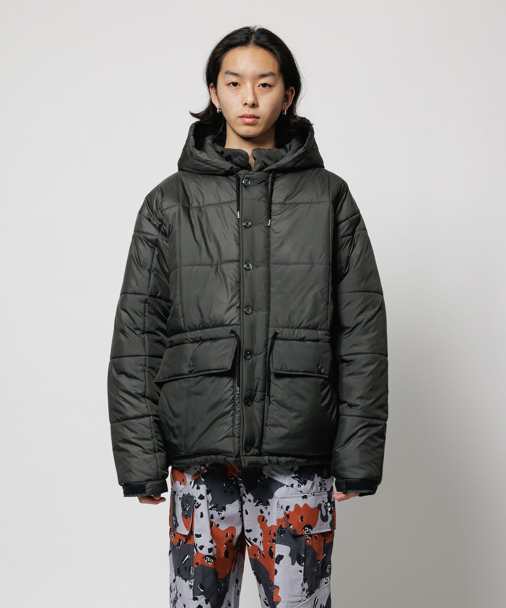 ワイドシルエットなこちらのアイテムは様々なトップスの上から羽織れる真冬対応のアウターとなっております。