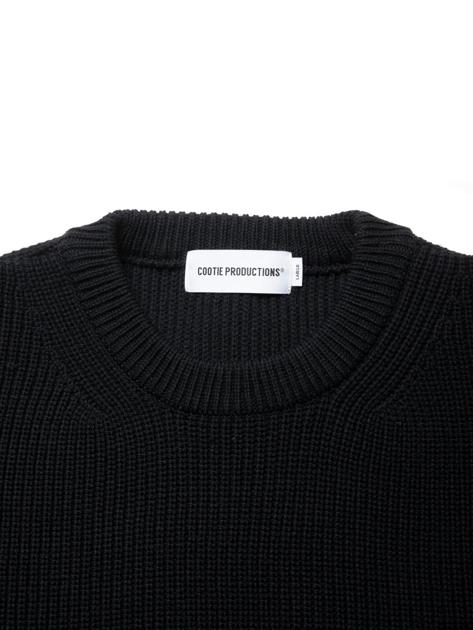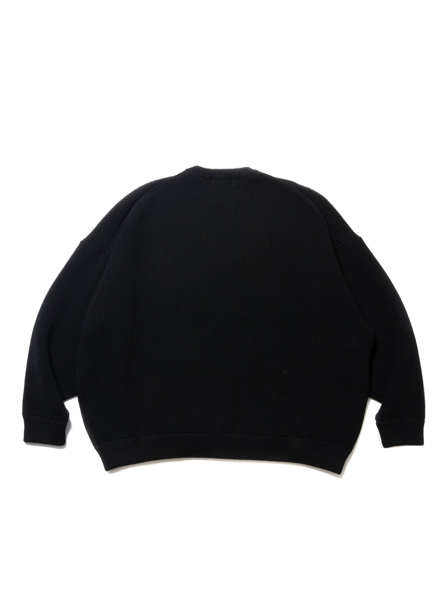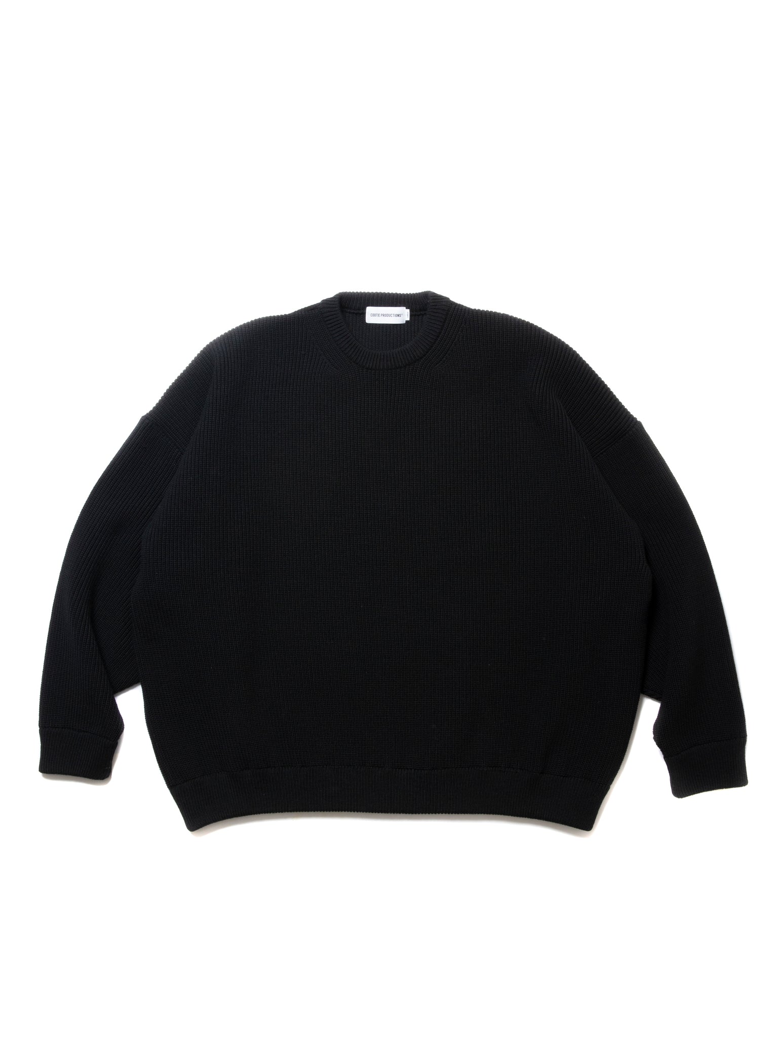 限界まで詰めて編み立てたリブ編みのクルーネックセーターです。