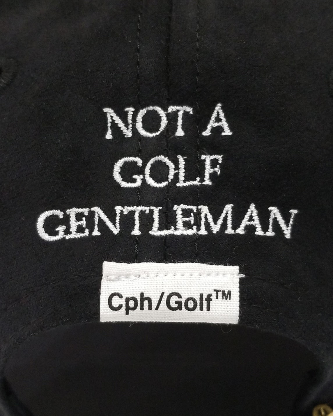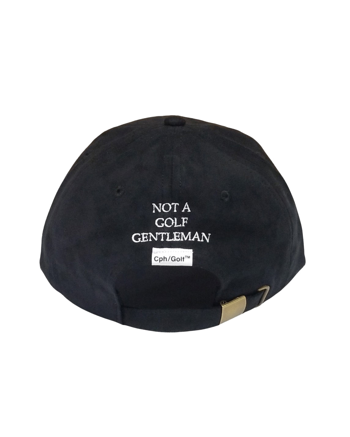 フロントブランドロゴ、バック"NOT A GOLF GENTLEMAN"の刺繍を施したスエードベースボールキャップです。